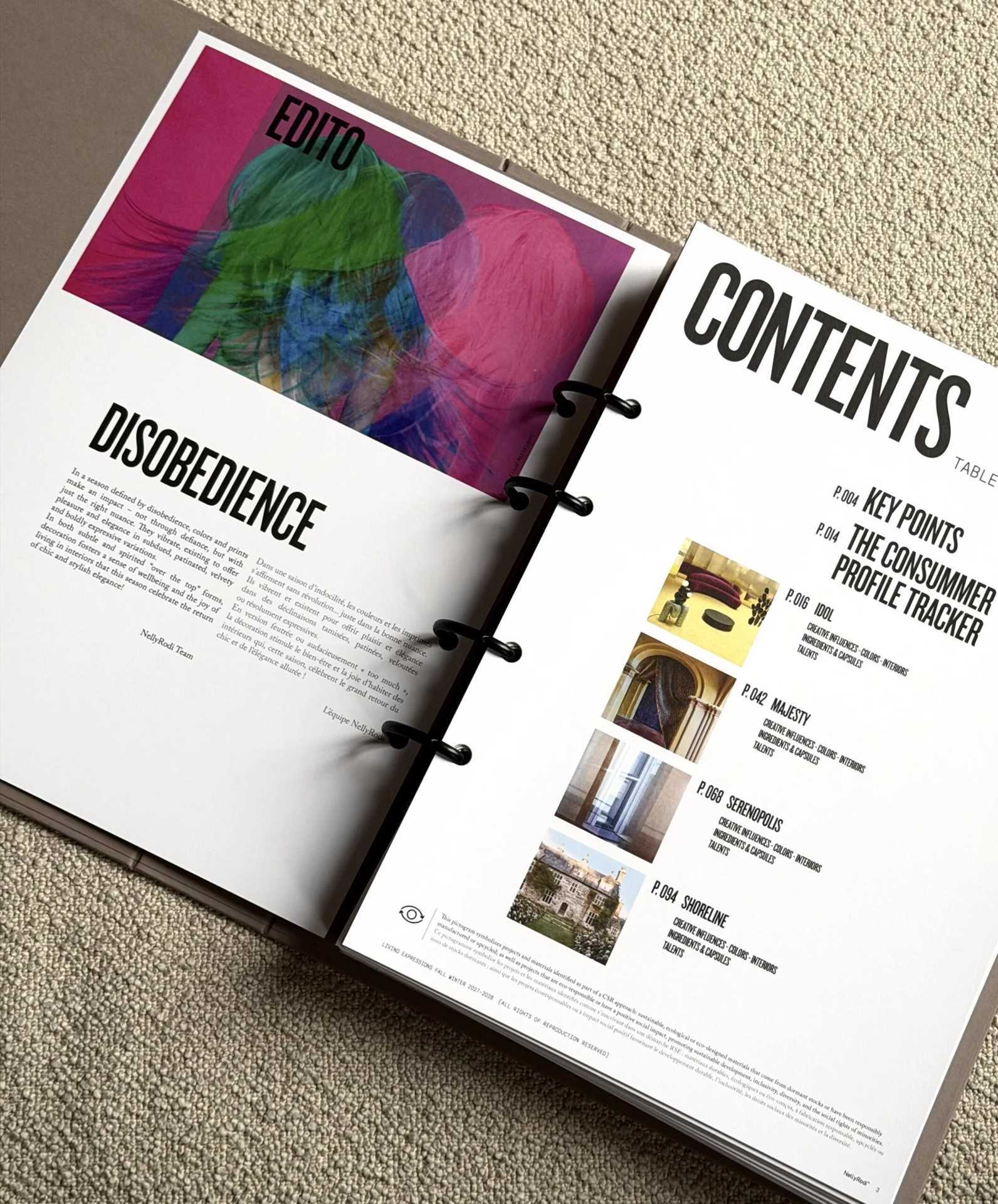 The Living Expressions trendbook is designed to be a creative catalyst. We worked with neuroscientists to make a tool that stimulates your senses, emotions, and brain. That happens through a choice of very powerful images, carefully edited semantic fields, vibrantly colored fabrics, tactile and even audible materials, and multiple cultural references to deepen your knowledge and awareness.