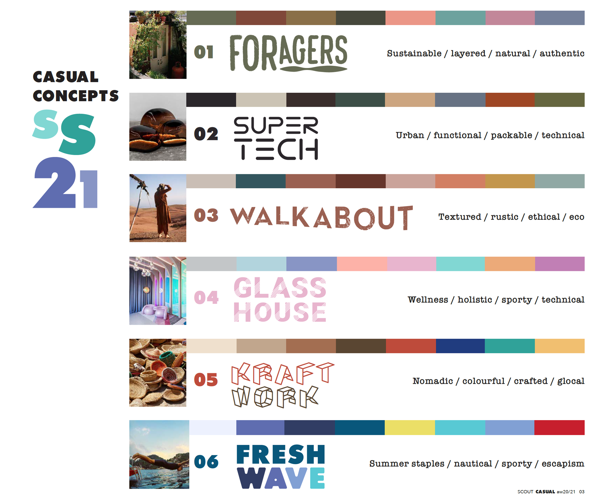 6 Scout Casual colour & lifestyle concepts with Pantone TCX colours in Core/Accent