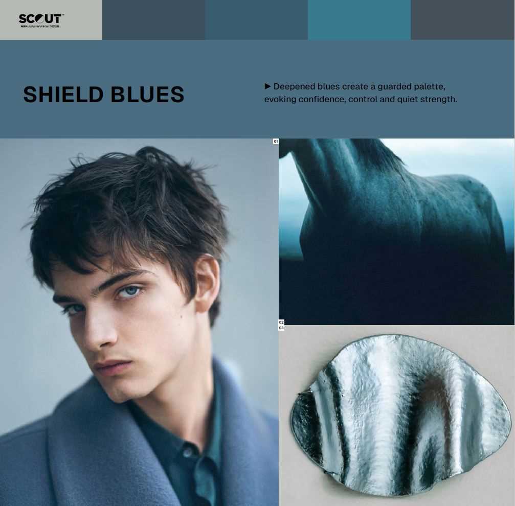 SCOUT menswear colour & concept for autumn/winter 2027-28. Lifestyle trend analyses, including early Colour, Trend mood boards, Styling and Accessories. The BOOK-package includes colour swatches and Pantone references and access to Scout online platform. Or you might choose only e-Book with online access only.