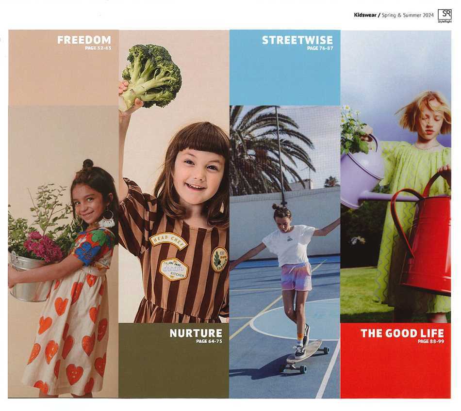 Spring/Summer 2024. Kid’s Trend Book is dedicated to designers and product developers working in all fields of children’s wear, from babies to teens. You will find everything necessary for successful, market-driven and fashionable collections: Colours, age group-specific garments (shirts, T-shirts, trousers, jackets and accessories like socks and shoes) as well as plenty of designs for print motifs, embroidery and applications.