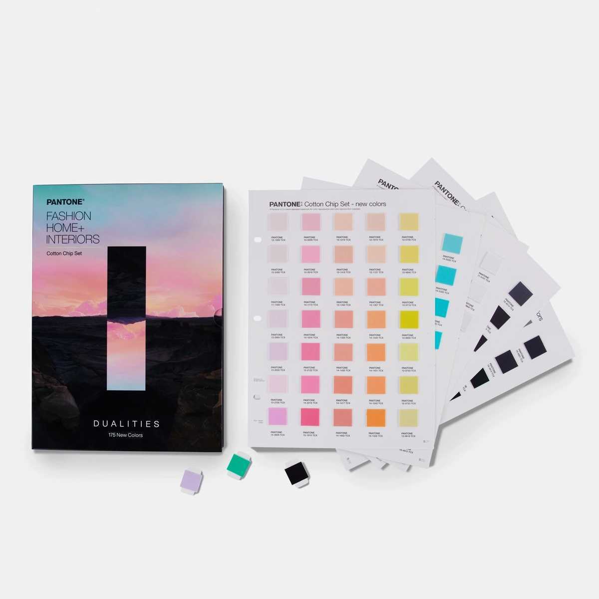 Introducerar överskådliga Pantone Cotton FHI Chip Set, med totalt 2.800 löstagbara färgklipp, inklusive de 175 nya (2024) Dualities-färgerna. Cotton Chip Set erbjuder ett praktiskt verktyg för att välja, jämföra och dela alla Pantone's Fashion, Home + Interiors (FHI) färger. Detta bibliotek av bomullschips är ett idealiskt format för designers och färgexperter att bygga färgpaletter, presentera moodboards och kommunicera färger för textilier, mjuka heminredningsprodukter och kläder. Skrolla ned för vår demo av formatet.