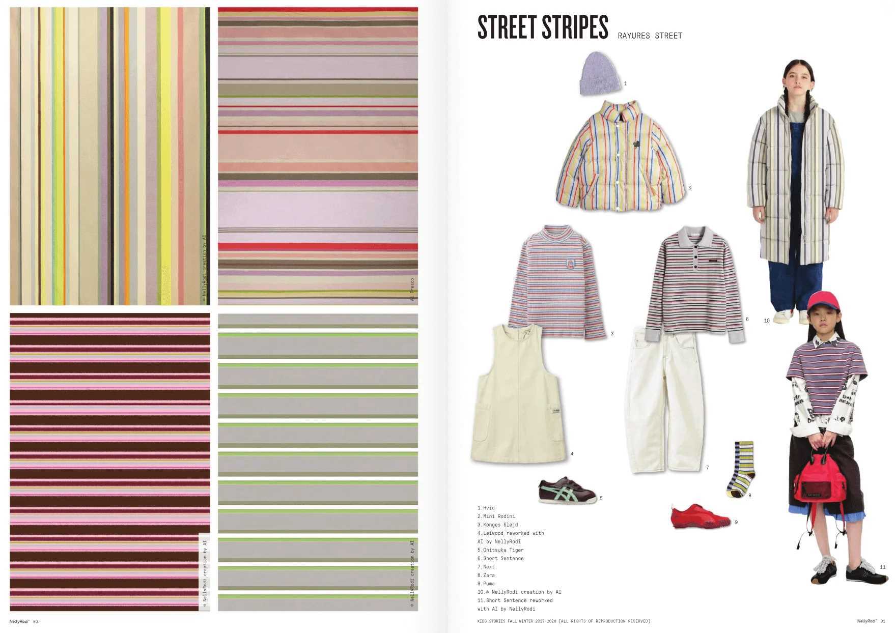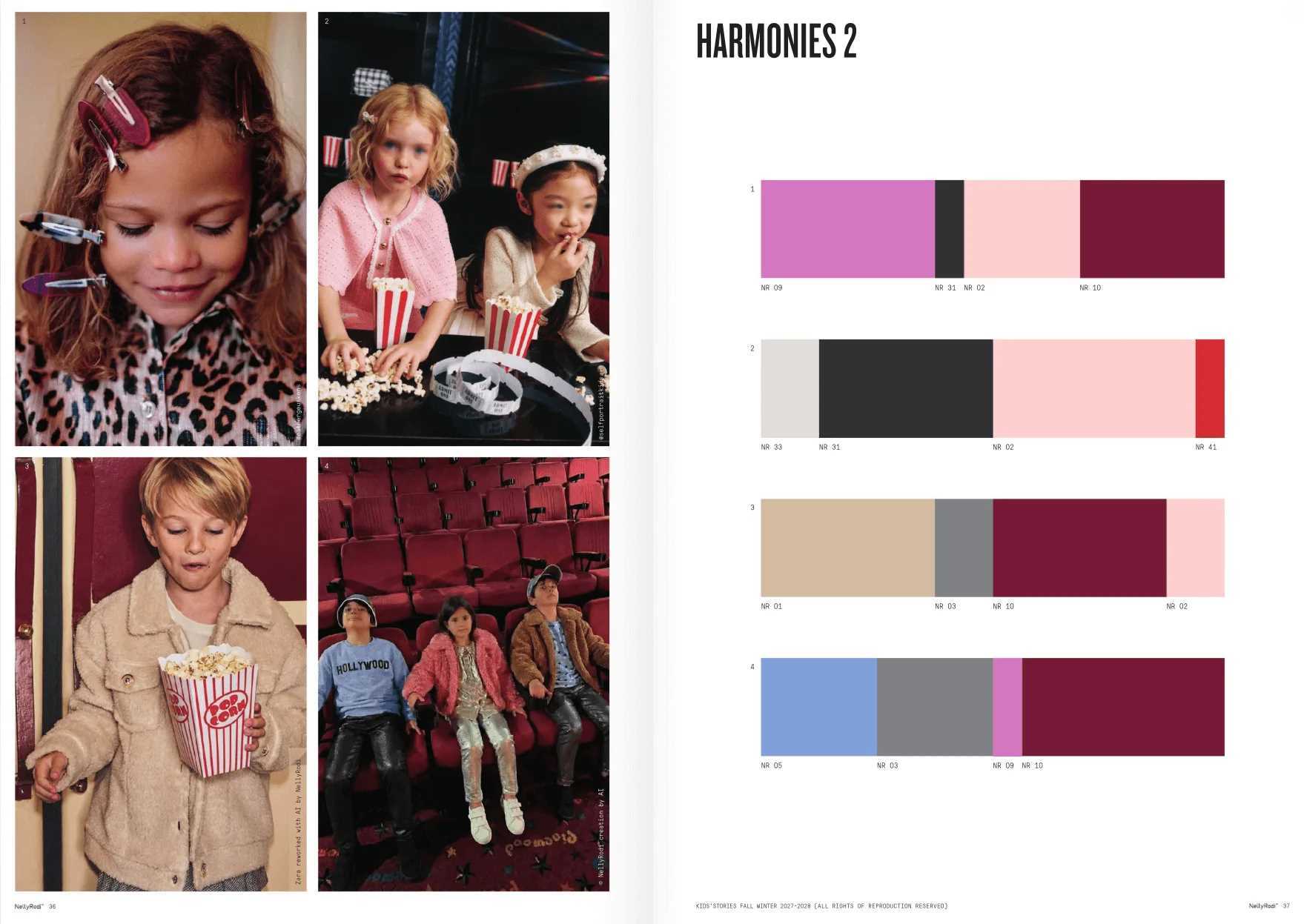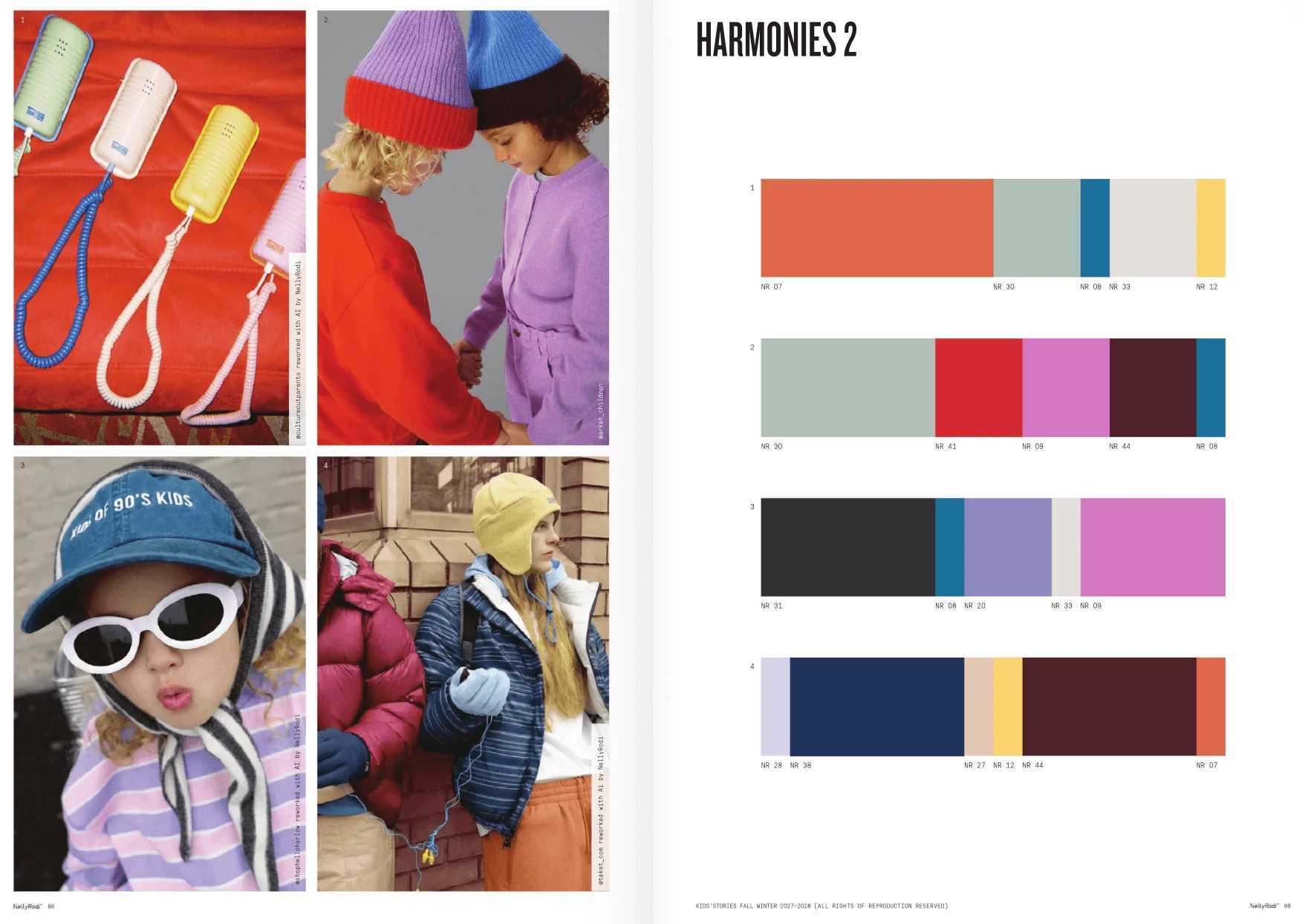 Every season NellyRodi develops 45 colours for the different Kids’ Stories themes. They’re organized into a range of palettes to help you invent new combinations and renew your customers’ interest in your products. The trendbook also includes a selection of the season’s essential fashions you can interpret in different colors and materials.