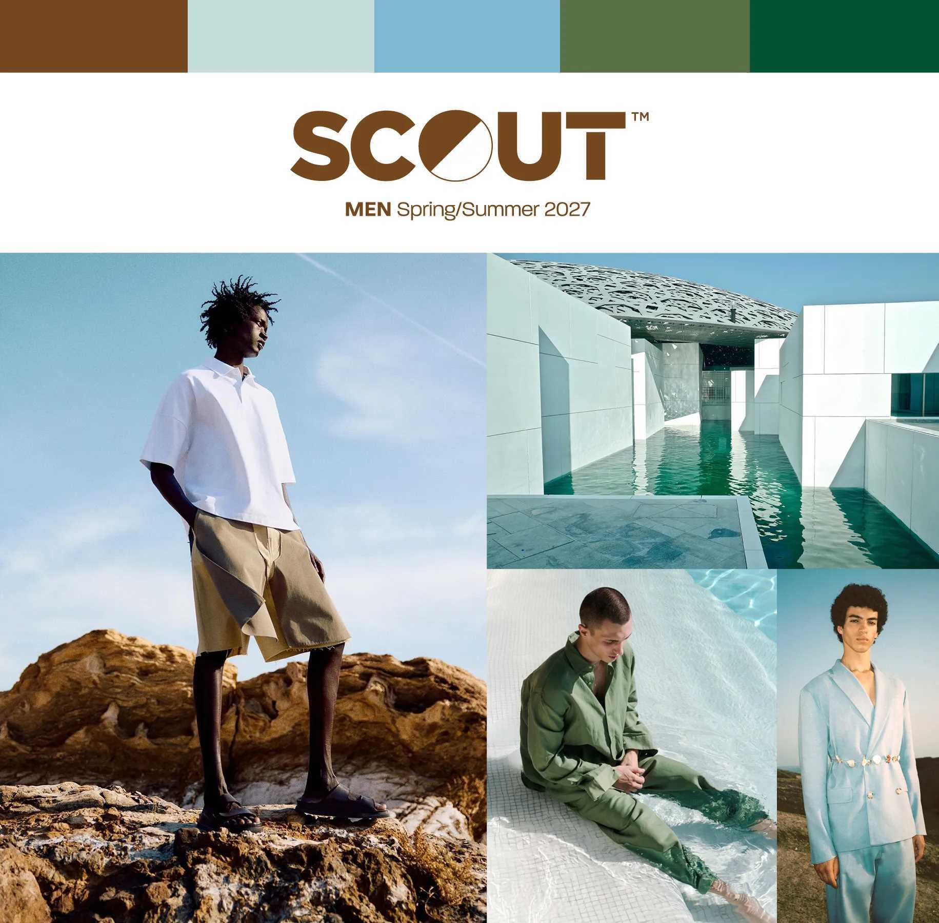 SCOUT Men ger en komplett vy för herr för trendsäsongen vår/sommar 2027. Early colour, Trend moodboards, Styling och Accessoarer. Färgboken publiceras som del I, fördjupning av trenderna som del II, läs mer nedan.