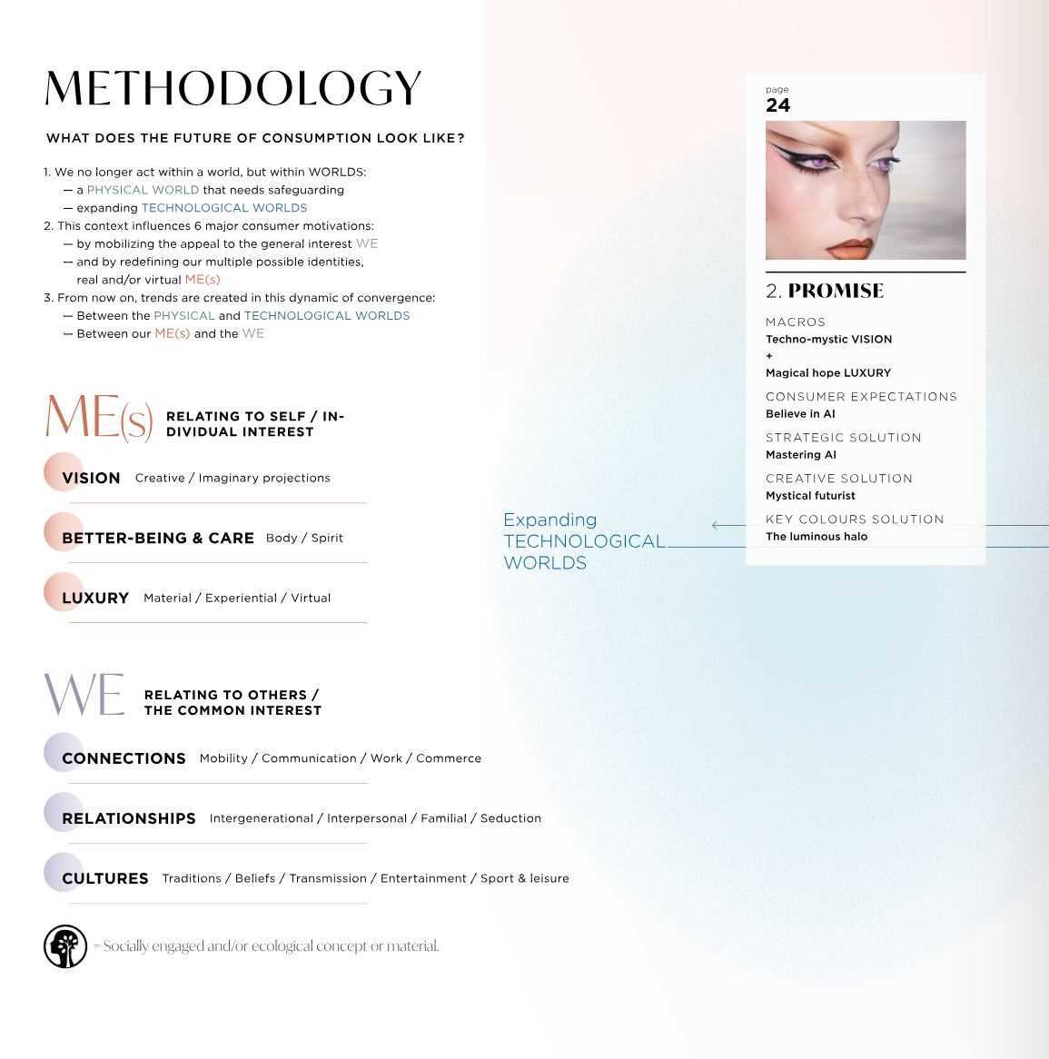 Autumn/Winter 2027-28. Macro perspectives, from We to Me. A polysensorial trendbook to liberate the Health and Beauty shifts curated to explore the needs of the aware consumers, why and what on lifestyle, inspiration, skincare, makeup, body and hair care, fragrance, well-being and packaging.